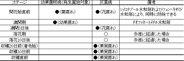 (発生対応型防除技術の確立(1)おうとうの幼果菌核病および灰星病)
