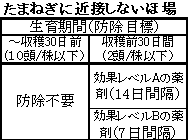 薬剤の効果レベルは表1による。たまねぎに近接していないほ場でも、雑草などの要因により多発することがあるので注意が必要である。