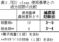 ねぎの主要病害虫に対し、収穫前30日間を主目的にした効率的な減農薬防除法を新たに提案した。この防除法により、YES! cleanの使用基準内(表2)で防除が可能であることが実証された。