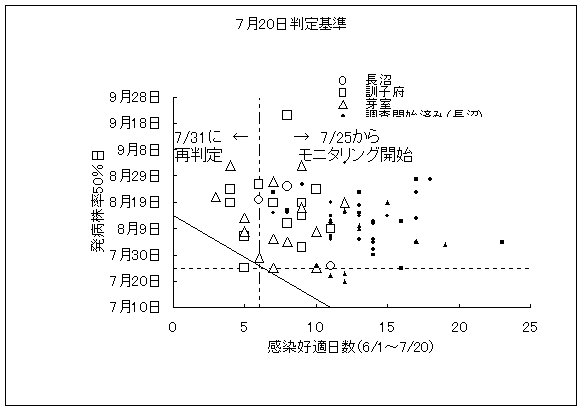 発病株率50%到達日を把握するためのモニタリング開始時期の決定に用いる。