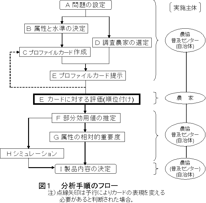 2)本手法の適用に当たっては、①既存資料・アンケート等による事前の情報収集・分析、 ②コンジョイント分析、③分析結果に基づく試験販売による確認、という手順をふむ必 要がある。
