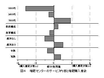3)農家の堆肥購入の拡大には、①低価格であることともに、②篩い掛けによる選別実施、③堆肥が完熟に達していること、④堆肥の輸送等、堆肥センター側で提供するサービスの有無で進展することが示唆された(図4)。したがって、堆肥センターが提供するサービスに見合った価格の設定が重要になる。