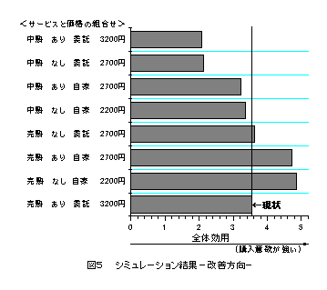 4)サービスの有無による適正価格についてシミュレーションをした(図5)。現状よりも需要の増加が見込まれる場面は、次の通りである。①堆肥の輸送を農家が行い、現状の3,200円から2,700円まで販売価格を低下させる。②選別を実施せずに、現状の3,200円から2,200円まで販売価格を低下させる。このように、コンジョイント分析を活用することで、堆肥の需要拡大に結びつくサービスと価格の組合せを明らかにすることができる。