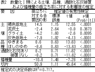 以上を要約すると、合理的施肥法や過酸化石灰なしの催芽籾の活用などにより落水出芽法での直播栽培の技術的完成度を高めるとともに、本技術の栽培適地を品種毎に示した。