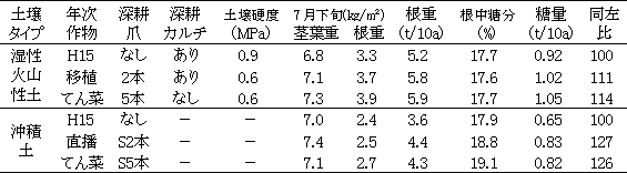 調査時期:湿性火山性土てん菜 5月中旬,その他 7月下旬