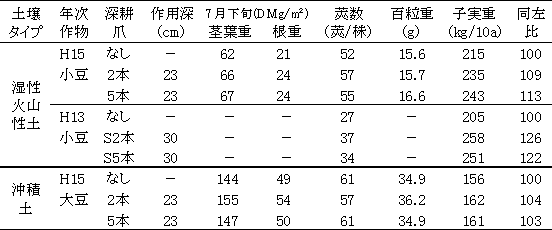 注)深耕爪 S:ストレート型,その他は2種の平均(表3,4も同様)