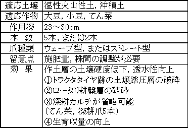 注)深耕爪 S:ストレート型,W:ウェーブ型,作用深23cm