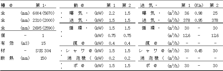 表2 曝気施設の主要諸元