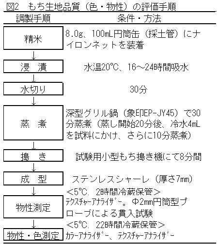 品質評価およびもち生地の調製:3)と同じ