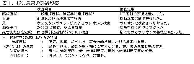 研究課題:BSE疑似患畜の経過観察と脳内接種法の確立