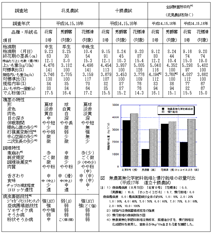 注:1)*1試験箇所数は、「男爵薯」対比はのべ30ヶ所、「花標津」対比はのべ12ヶ所。