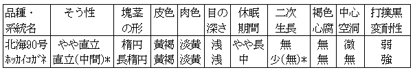 注)*:括弧内はばれいしょ種苗特性分類調査報告書(S56)に基づく登録値