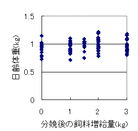 図1 母牛への分娩後の飼料増給と子牛の日齢体重との関係【1)】