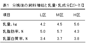 (1)乳量・乳成分に対する分娩後の飼料増給効果