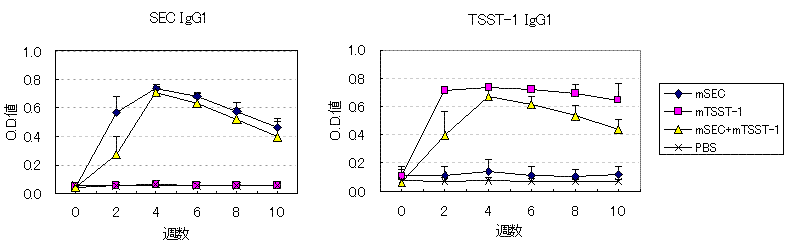 図1 SECおよびTSST-1の免疫による血清中抗体価の推移