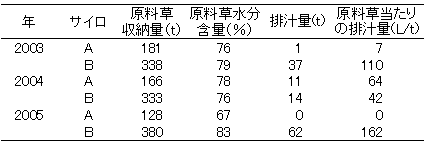 表1 畜試サイロにおける原料草収納量、水分および排汁量