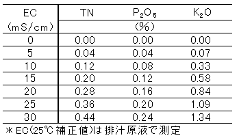 ② 排汁の肥料成分含量はサイロ、排出時期、雨水の混入等により変動し、電気伝導度(EC)の測定により推定可能であった(表3)。