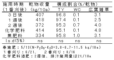 表6 排汁施用時期が2番草の収量および草種構成に及ぼす影響