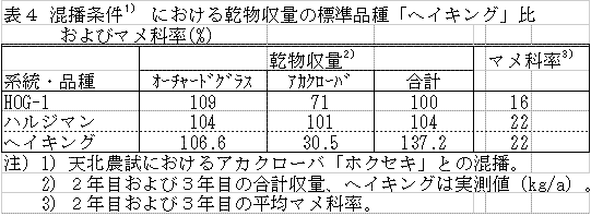 ら合成第2代種子を用い、6場所で単播試験を実施した。天北農試では混播試験も実施した。