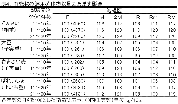 4)有機物の長期連用が作物の収量性に及ぼす影響