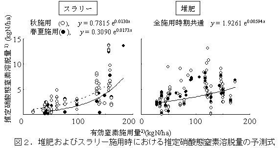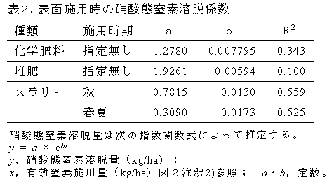 ここで、y,硝酸態窒素溶脱量(kg/ha); a・b,定数; x,有効窒素施用量(kg/ha)