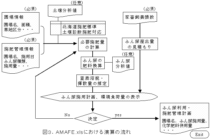 5) 以上の環境影響評価法と既存の施肥管理に関する指標に基づき、1戸の酪農家を基本単位とするふん尿利用計画支援ソフトを構築した。