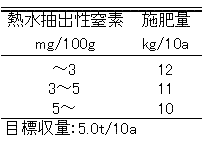 したがって、現地の施肥量は概ね妥当であると考えられた。以上より窒素用量試験の結果と合わせて、早春まきかぶの窒素肥沃度別の施肥対応を作成した(表3)。