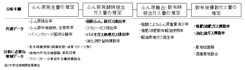 本成果で使用した原単位は、主に道東草地型酪農専業地帯を対象に設定したものであり、それ以外の地域で適用する際は新たに設定し直す必要がある。
