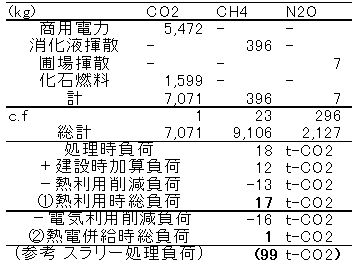 (表3)。更なる負荷削減のためには、大量に発生する余剰ガスの有効利用策を講じる必要がある。