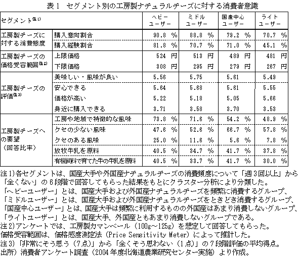 ともに、各セグメントの特徴や工房製チーズに対する消費者意識を明らかにし、工房製チーズの販売戦略を検討する。