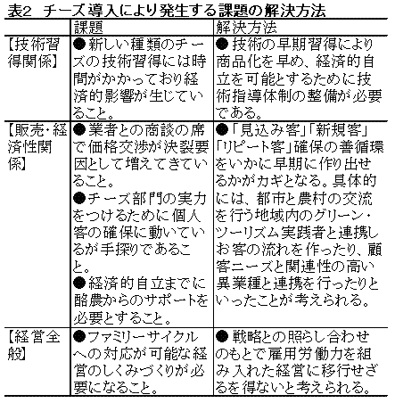 2)経営実態調査により、チーズ導入の目的と特徴を整理する。