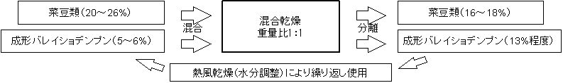 混合乾燥は,デンプンを吸水材として菜豆類と混合堆積し,通風は行わずに,受入水分(16〜18%程度)まで乾燥する(図1)。混合乾燥終了後,吸水したデンプンは熱風乾燥して再利用する。