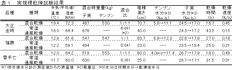 きる(表1)。乾燥終了時のデンプン水分は13%程度であった。