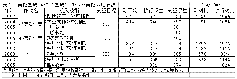 2) 実証した輪作体系