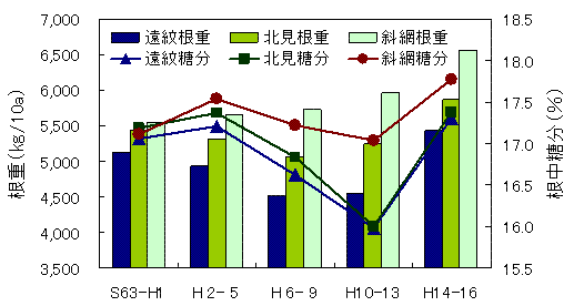 あったため、同地区の根重、根中糖分は平成15年以降、回復傾向にある。