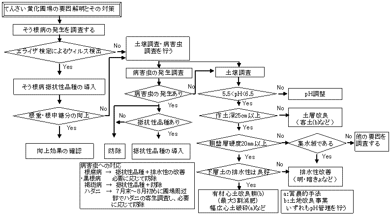 図5 黄化症状並びに低収・低糖分の総合改善策フローチャート