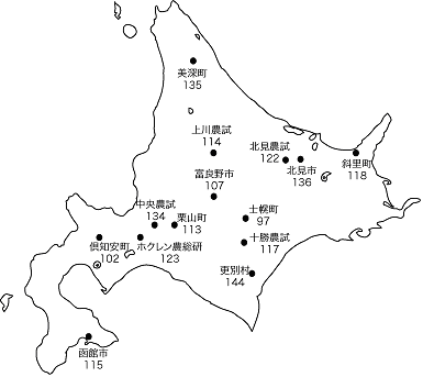 5)*5北見農試と北海道農業研究センターの結果による。