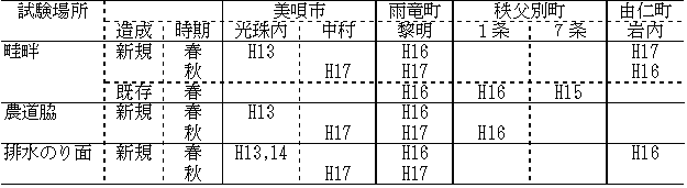 試験場所:場内幹線明渠(北向き面、南向き面)、圃場 1区16株/㎡、1反復
