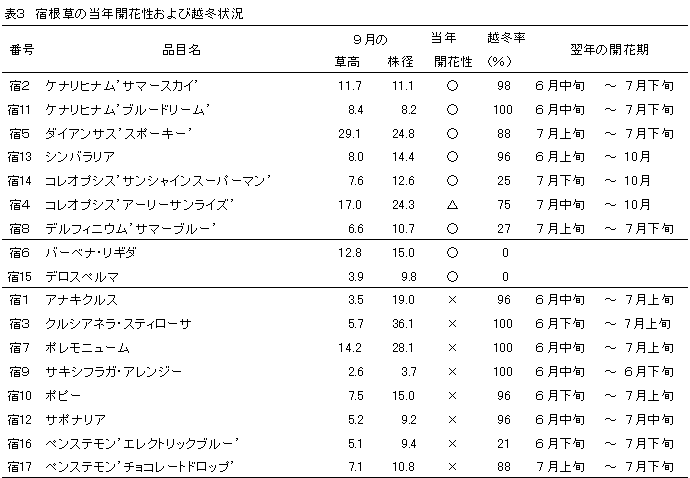 3)宿根草有望品目の探索と実用化