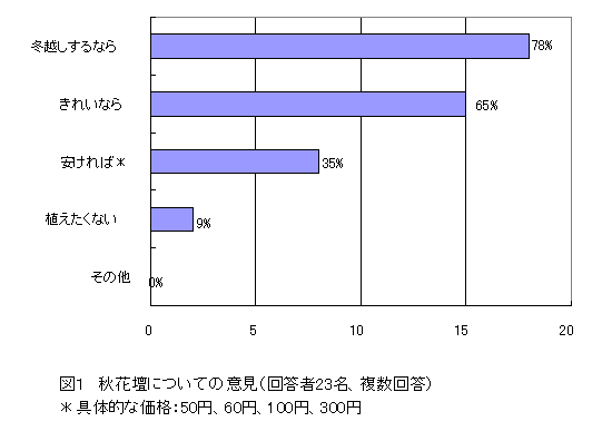 気が高かった。アンケート調査では秋花壇苗の条件として「冬越しするなら」をあげた人が最も多かったが、「冬越ししなくてもきれいなら」をあげた人も半数以上いた(図1)。