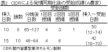 頭)が受胎した。挿入期間10と15日間では受胎までの日数に差はなかった(表2)。