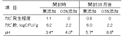 表1 尿素0.5%混合添加の有無におけるカビ発生程度 (n=5) |