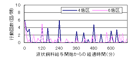 ![]() 図1 液状飼料給与開始から12時間の採食行動の推移 |
