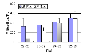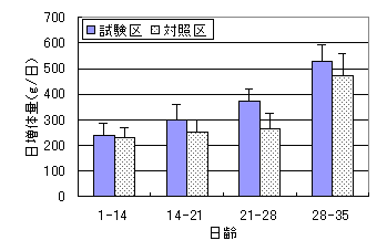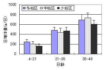 ああああああ | ![]() 図2 液状飼料を給与した14日齢離乳子豚の日増体量