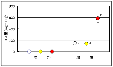 3)アイヌワカメから抽出した脂溶性成分の添加では、鶏卵中に生理活性作用のあるω3系列関連脂肪酸の1つであるDHA量が増加し(図1)、フコステロールやフコキサンチンの代謝産