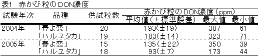 1.目的 デオキシニバレノール(DON)汚染低減を主眼とした合理的な薬剤防除対策を確立する.