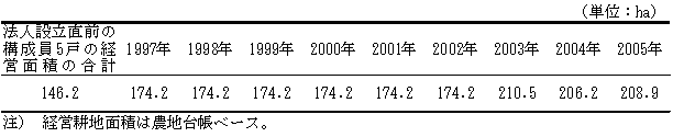 3)法人設立直前のメロディーファームの構成員5戸の経営耕地面積の合計は146.2haであったが、同社は賃貸借を主体とした権利移動によって、設立後9年間で新たに62.7haの農地を集
