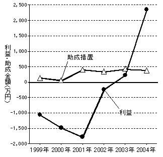 2)設立時からのA法人の利益額の推移を見ると,法人立ち上げ時の利益額は低かった(図2)。そのような中,農協,役場による経済的な助成措置は,初期の経済的な安定化と経営改善に要する期間の短縮に寄与していた。これにより,A法人は設立後5年目で黒字へと転換できた。