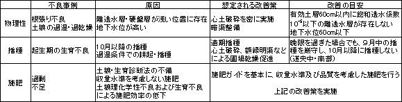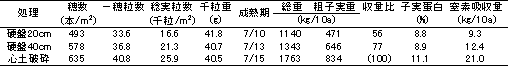 4.成果の活用面と留意点 1)道央転換畑の秋まき小麦について、収量・品質変動要因の把握とその改善策として活用できる 5.残された問題とその対応 土壌条件に応じた耕起管理法の開発、土壌水分供給法の開発、土壌・生育に適合した窒素追肥体系の確立 |