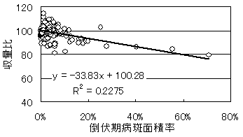 ![]() ![]() 図5 白斑葉枯病の発病と収量の関係 (2004〜2007年,中央・北見農試,最も防除効果の高い処理区を100とした収量比,n=149、r=-0.47696**) 4.成果の活用面と留意点 1)たまねぎの白斑葉枯病および、ネギアザミウマの防除対策として活用する。 2)試験は、網走および空知支庁管内で、中晩生品種を用い中晩生作型において行った。 3)白斑葉枯病の初発を探す際、灌水も降雨に相当するので留意する。 5.残された問題点とその対応 1)本防除体系を用いた場合の灰色腐敗病への対応 2)ネギアザミウマの密度増加時期が想定より早い年次の対応 |
